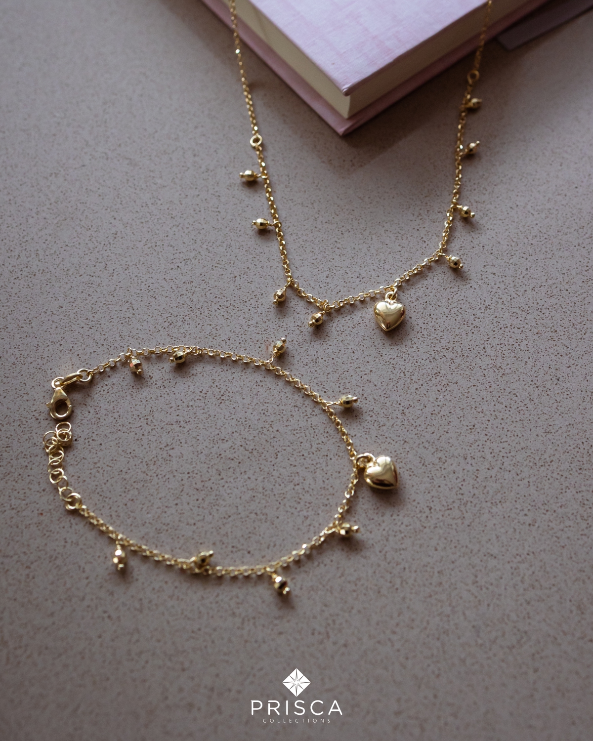 Parure in Argento Placcato Oro Cuore Bombato Oro Catena Forzatina Allungo
