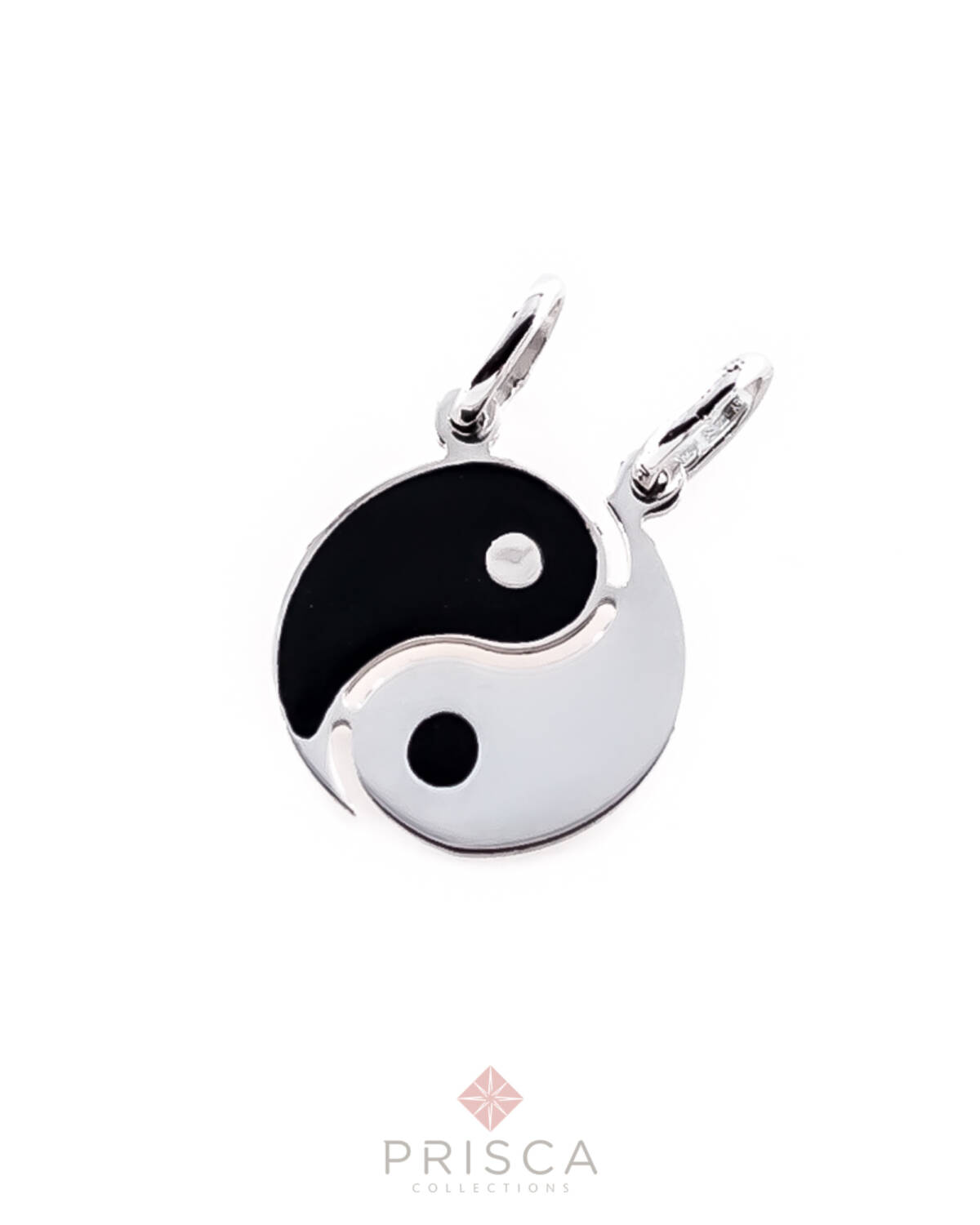 Sold by Prisca OfficialPendente Argento 925, Placcato Oro Bianco (Rodiato Anallergico) Tao Yin Yang divisibile Smaltato di colore Nero
