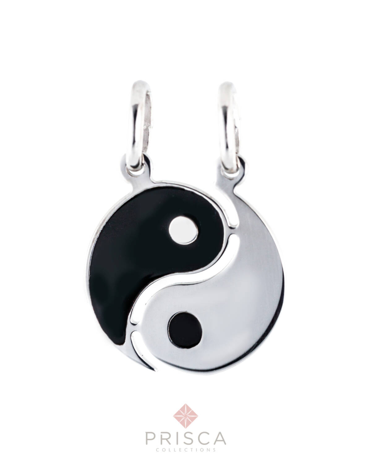 Pendente in Argento Tao Yin Yang divisibile Smaltato Nero